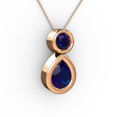 Lab safir 925 ayar rose altın kaplama gümüş kolye (40 cm rose altın rolo zincir)