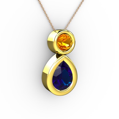 Lab safir ve sitrin 8 ayar altın kolye (40 cm gümüş rolo zincir)