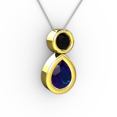 Lab safir ve siyah zirkon 14 ayar altın kolye (40 cm beyaz altın rolo zincir)