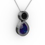 Lab safir ve siyah zirkon 925 ayar siyah rodyum kaplama gümüş kolye (40 cm gümüş rolo zincir)