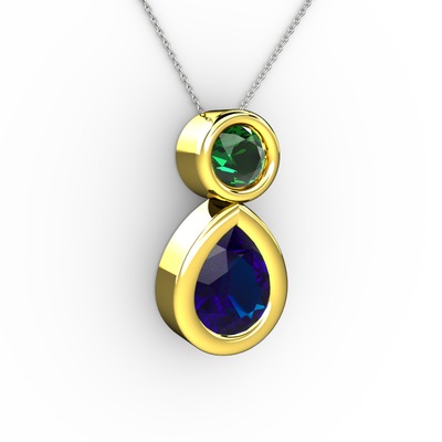 Lab safir ve yeşil kuvars 8 ayar altın kolye (40 cm beyaz altın rolo zincir)
