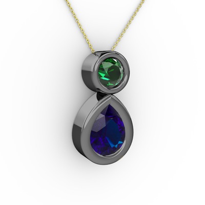 Lab safir ve yeşil kuvars 925 ayar siyah rodyum kaplama gümüş kolye (40 cm altın rolo zincir)