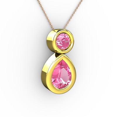 Pembe kuvars 14 ayar altın kolye (40 cm rose altın rolo zincir)