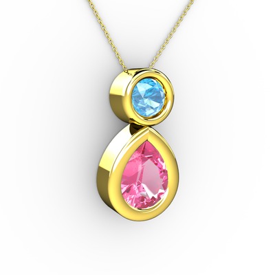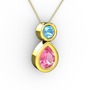 Pembe kuvars ve akuamarin 18 ayar altın kolye (40 cm altın rolo zincir)