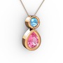 Pembe kuvars ve akuamarin 18 ayar rose altın kolye (40 cm rose altın rolo zincir)