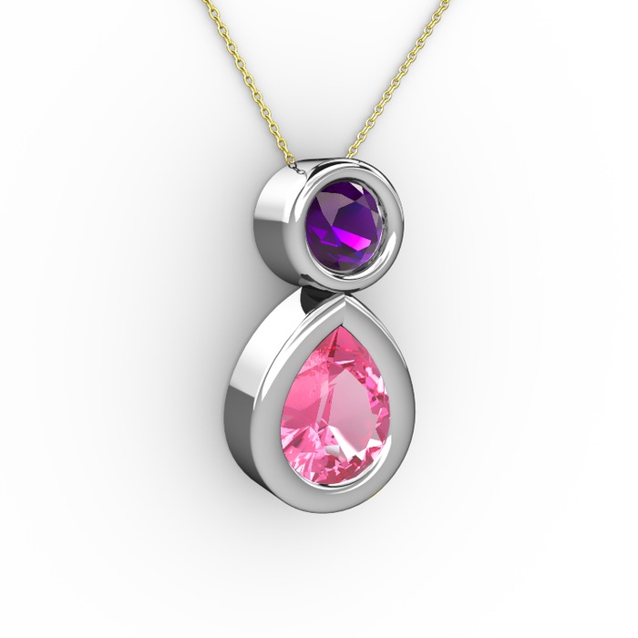 Pembe kuvars ve ametist 8 ayar beyaz altın kolye (40 cm altın rolo zincir)