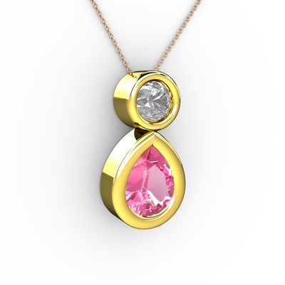 Pembe kuvars ve beyaz zirkon 18 ayar altın kolye (40 cm rose altın rolo zincir)