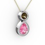 Pembe kuvars ve dumanlı kuvars 14 ayar beyaz altın kolye (40 cm altın rolo zincir)