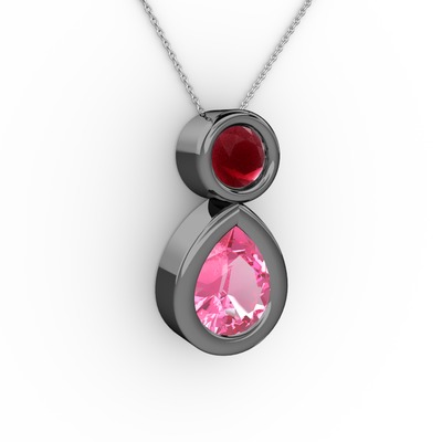 Pembe kuvars ve kök yakut 925 ayar siyah rodyum kaplama gümüş kolye (40 cm gümüş rolo zincir)
