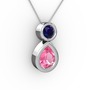 Pembe kuvars ve lab safir 925 ayar gümüş kolye (40 cm beyaz altın rolo zincir)