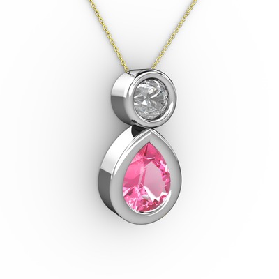 Pembe kuvars ve pırlanta 8 ayar beyaz altın kolye (0.5 karat, 40 cm altın rolo zincir)