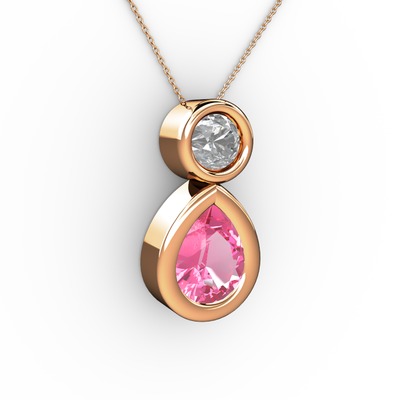Pembe kuvars ve pırlanta 925 ayar rose altın kaplama gümüş kolye (0.5 karat, 40 cm gümüş rolo zincir)