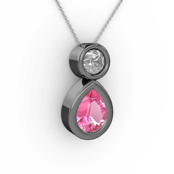 Pembe kuvars ve pırlanta 925 ayar siyah rodyum kaplama gümüş kolye (0.5 karat, 40 cm beyaz altın rolo zincir)