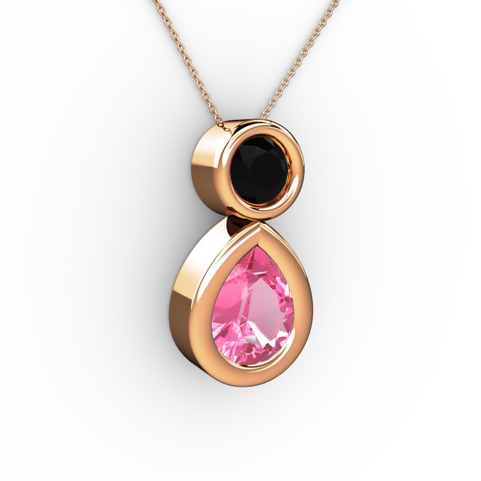 Pembe kuvars ve siyah zirkon 925 ayar rose altın kaplama gümüş kolye (40 cm gümüş rolo zincir)