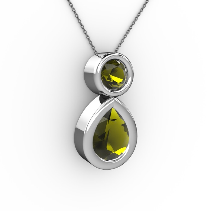 Peridot 8 ayar beyaz altın kolye (40 cm gümüş rolo zincir)