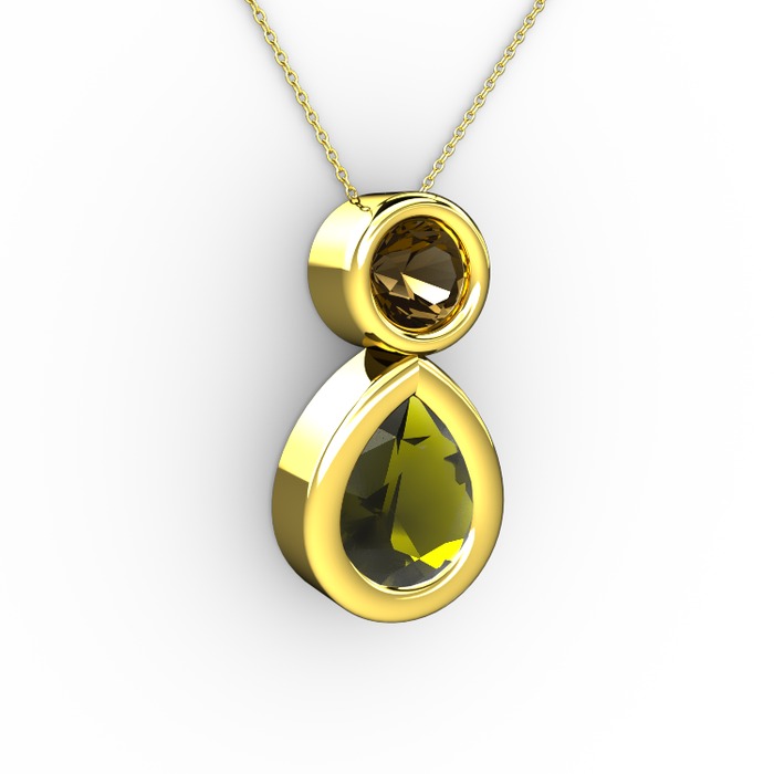 Peridot ve dumanlı kuvars 14 ayar altın kolye (40 cm altın rolo zincir)