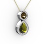 Peridot ve dumanlı kuvars 18 ayar beyaz altın kolye (40 cm altın rolo zincir)