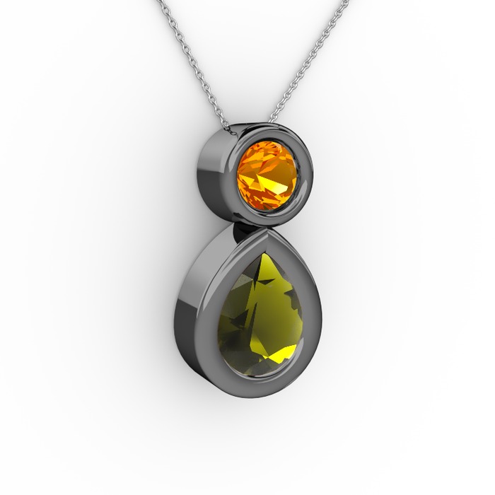 Peridot ve sitrin 925 ayar siyah rodyum kaplama gümüş kolye (40 cm beyaz altın rolo zincir)