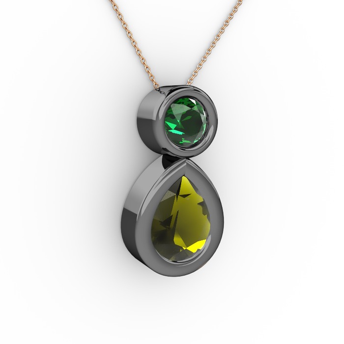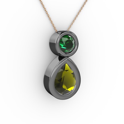 Peridot ve yeşil kuvars 925 ayar siyah rodyum kaplama gümüş kolye (40 cm gümüş rolo zincir)