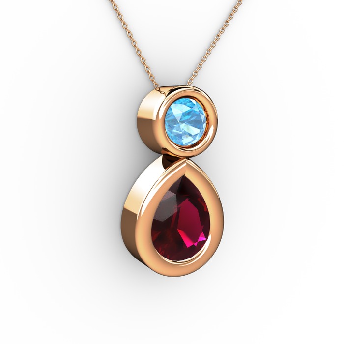 Rodolit garnet ve akuamarin 8 ayar rose altın kolye (40 cm rose altın rolo zincir)