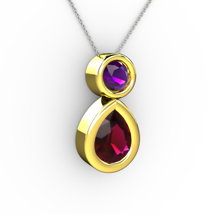 Rodolit garnet ve ametist 925 ayar altın kaplama gümüş kolye (40 cm gümüş rolo zincir)