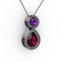 Rodolit garnet ve ametist 925 ayar siyah rodyum kaplama gümüş kolye (40 cm gümüş rolo zincir)