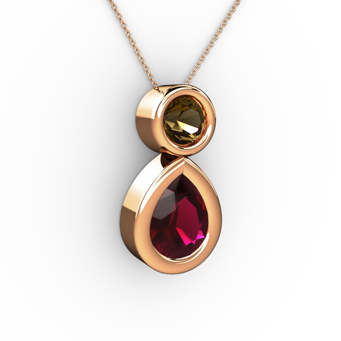 Rodolit garnet ve dumanlı kuvars 8 ayar rose altın kolye (40 cm rose altın rolo zincir)