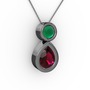 Rodolit garnet ve kök zümrüt 925 ayar siyah rodyum kaplama gümüş kolye (40 cm gümüş rolo zincir)