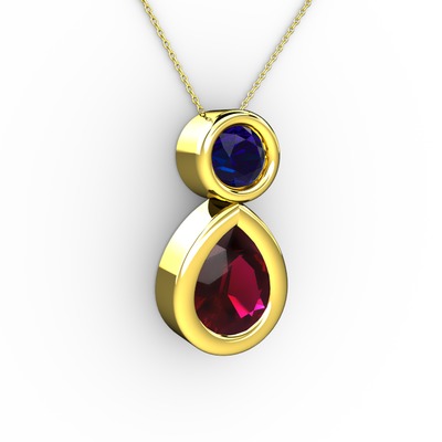 Rodolit garnet ve lab safir 8 ayar altın kolye (40 cm gümüş rolo zincir)