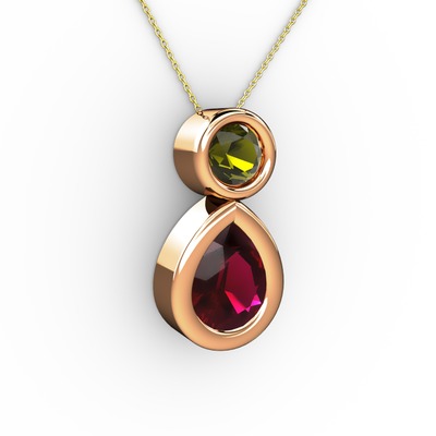 Rodolit garnet ve peridot 8 ayar rose altın kolye (40 cm gümüş rolo zincir)