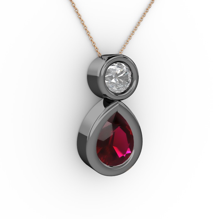 Rodolit garnet ve pırlanta 925 ayar siyah rodyum kaplama gümüş kolye (0.5 karat, 40 cm rose altın rolo zincir)