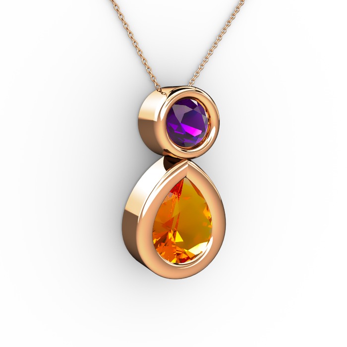 Sitrin ve ametist 8 ayar rose altın kolye (40 cm rose altın rolo zincir)