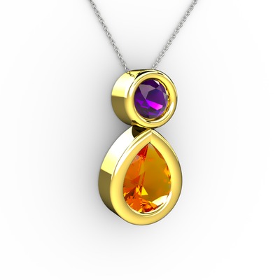 Sitrin ve ametist 925 ayar altın kaplama gümüş kolye (40 cm beyaz altın rolo zincir)