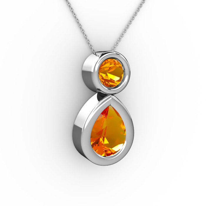Sitrin 925 ayar gümüş kolye (40 cm beyaz altın rolo zincir)