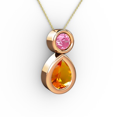 Sitrin ve pembe kuvars 18 ayar rose altın kolye (40 cm altın rolo zincir)