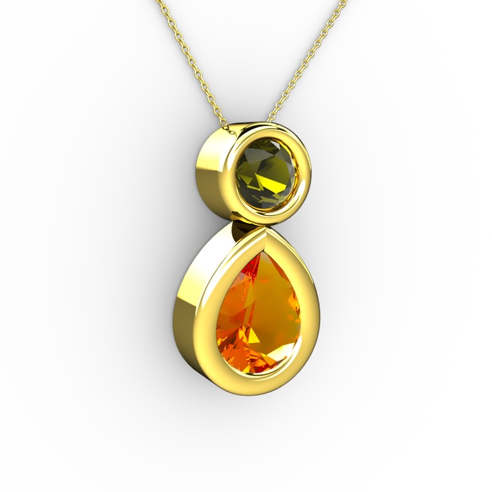 Sitrin ve peridot 14 ayar altın kolye (40 cm altın rolo zincir)