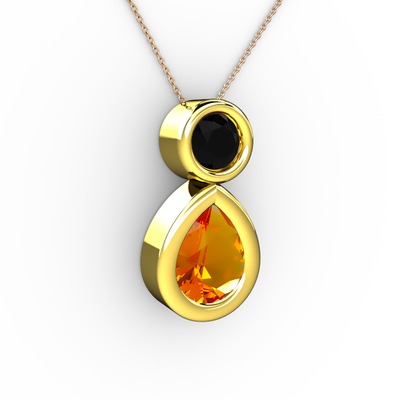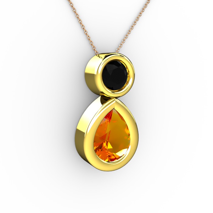 Sitrin ve siyah zirkon 8 ayar altın kolye (40 cm rose altın rolo zincir)