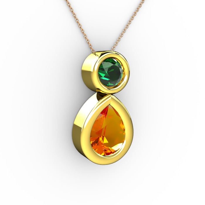 Sitrin ve yeşil kuvars 8 ayar altın kolye (40 cm rose altın rolo zincir)