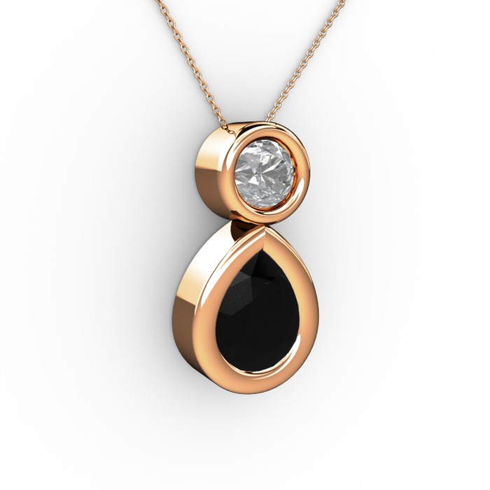 Siyah zirkon ve beyaz zirkon 14 ayar rose altın kolye (40 cm rose altın rolo zincir)