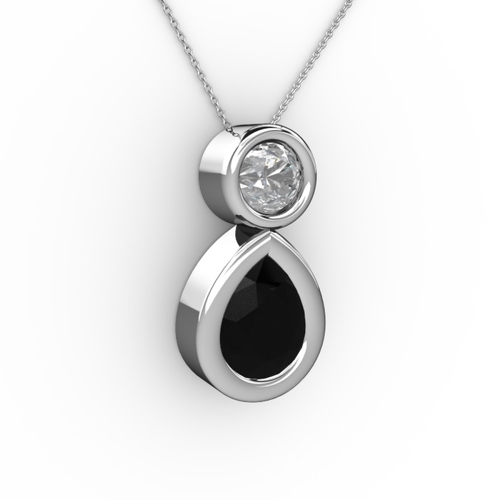 Siyah zirkon ve beyaz zirkon 18 ayar beyaz altın kolye (40 cm beyaz altın rolo zincir)