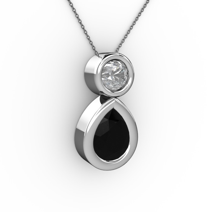 Siyah zirkon ve beyaz zirkon 18 ayar beyaz altın kolye (40 cm gümüş rolo zincir)