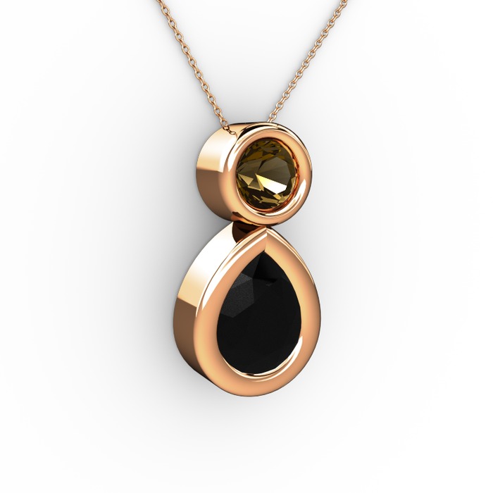 Siyah zirkon ve dumanlı kuvars 18 ayar rose altın kolye (40 cm rose altın rolo zincir)