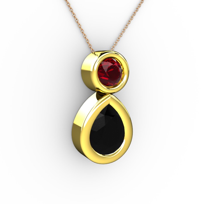 Siyah zirkon ve garnet 8 ayar altın kolye (40 cm gümüş rolo zincir)