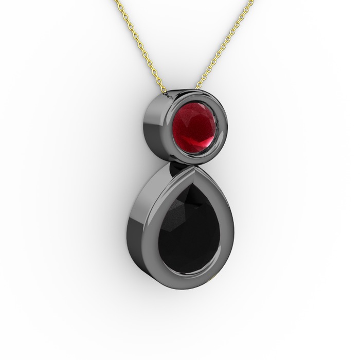 Siyah zirkon ve kök yakut 925 ayar siyah rodyum kaplama gümüş kolye (40 cm altın rolo zincir)