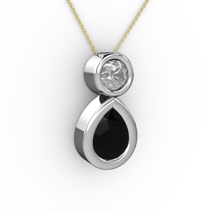 Siyah zirkon ve pırlanta 18 ayar beyaz altın kolye (0.5 karat, 40 cm altın rolo zincir)