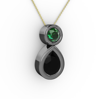 Siyah zirkon ve yeşil kuvars 925 ayar siyah rodyum kaplama gümüş kolye (40 cm altın rolo zincir)