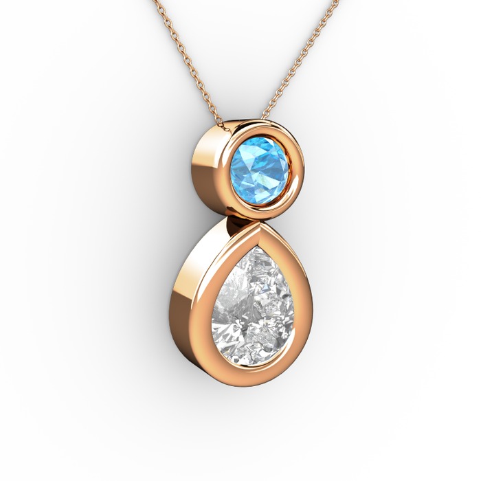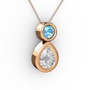 Swarovski ve akuamarin 8 ayar rose altın kolye (40 cm rose altın rolo zincir)