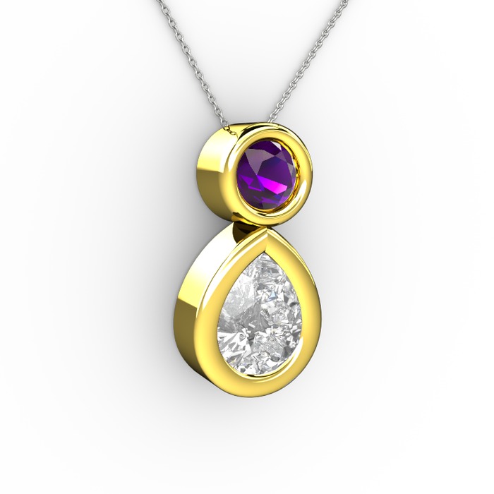 Swarovski ve ametist 14 ayar altın kolye (40 cm beyaz altın rolo zincir)