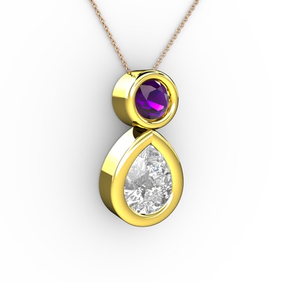 Swarovski ve ametist 14 ayar altın kolye (40 cm gümüş rolo zincir)