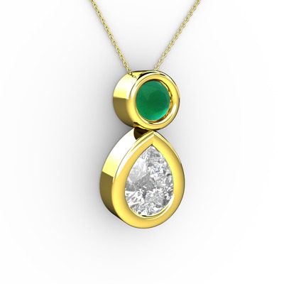 Swarovski ve kök zümrüt 925 ayar altın kaplama gümüş kolye (40 cm altın rolo zincir)